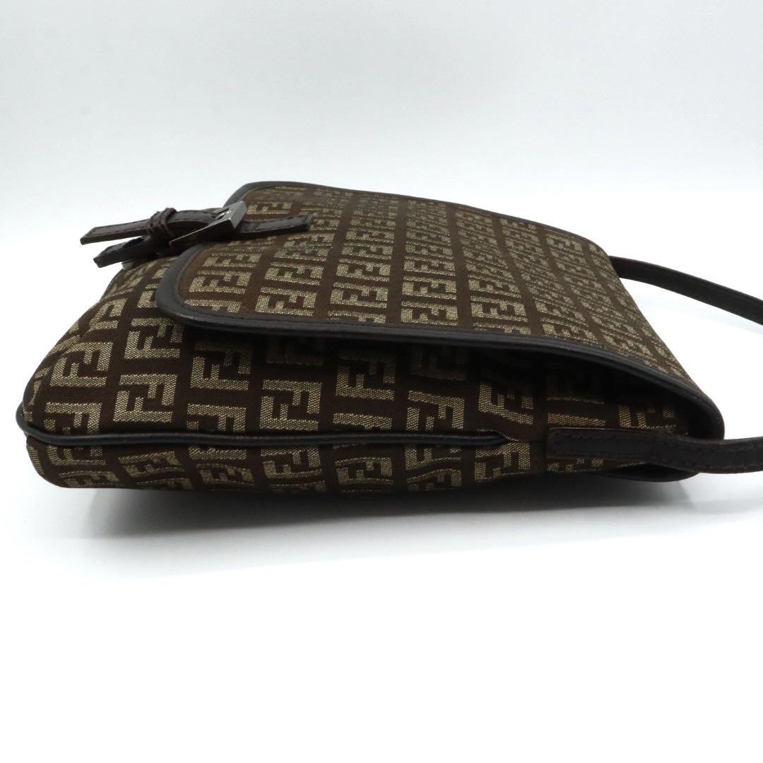 Fendi Zucca FF Logo Shoulder Bag Black with Metal Fittings Pre-Owned