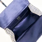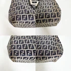 This is a FENDI Mamma Baguette handbag featuring the Zucchino pattern with gray canvas and brown leather accents. The colors are gray and navy. Measurements: Height is 4.72 inches, width is 9.06 inches, depth is 4.33 inches, and the handle is 17.72 inches. The bag is made of canvas and leather. It comes with a storage bag. It is a used item and shows signs of use, with some slight fading and scuffing. Please check the images to assess the condition. I promise fast shipping via FedEx or DHL as soon as possible! Import duties, taxes and charges are not included in the item price or shipping charges. These charges are the buyer’s responsibility. These charges are normally collected by the delivering freight (shipping) company or when you pick the item up - do not confuse them for additional shipping charges.