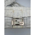 Authentic Fendi & Marc Jacob's spring summer 2023 collection Was purchased in Milan Italy for 3300 in 2023 Approximate measurements: Height: 8.5" (21.5 cm) Width: 15" (38 cm) Depth: 3" (7.5 cm) Handle Drop: 8" (20 cm) Strap Drop: 35" Composition: 100% cotton exterior, 100% polyester interior, metal hardware. Interior: excellent condition Exterior: has spots on it. Might be from hardware but not sure. Haven't tried to clean it yet. Please check all the photos provided before making a purchase. Price has been lowered for this reason Will require signature upon arrival Exterior Material: Denim Style: Shoulder Bag Exterior Color: denim White Product Line: Baguette Bag Hardware Color: Silver Pattern: Logo Closure: Buckle Accessories: Detachable Strap Keywords: Fendi Baguette Bag, White Denim Bag, Embroidered FF Logo, Shoulder Bag, Designer Handbag, Vintage Bag, Luxury Bag, Marc Jacob's , Fendi Roma, Baguette Bag, Denim Shoulder Bag, FF Buckle, Fashion Accessory, Chic Bag, Street Style