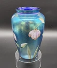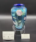 This exquisite Fenton favrene vase, with its hand-painted floral motifs, is a distinguished masterpiece. Crafted in a limited edition, it showcases rare artistry and elegance. A captivating choice for enhancing your home decor with a touch of sophistication and exclusivity. Own a piece of art history today. • Height: Approximately 8.5 inches • Limited Edition: 544/1850 pieces • Hand-painted floral patterns with 22K gold accents • Signature on the base and authenticity card included Used but in excellent condition. No chips, cracks, or repairs. Some worn areas on the bottom that do not affect its overall aesthetics or functionality. See photos for details.