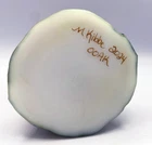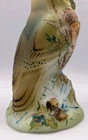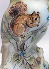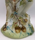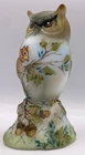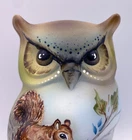 Here's a splendid one-of-a-kind hand painted Opal Satin glass Owl figurine from Fenton artist Michelle Kibbe (5.625" tall, made by our friends at Mosser Glass, using the Fenton mould). Michelle's delightful, eye-catching hand painted design features a hungry Squirrel and lots and lots of acorns. Michelle's talent for accurate depictions of wildlife is shown to perfection. The head of the majestic hand painted Owl in natural tones has piercing eyes, and dotted white accents add to its presence. The fulsome hand painted acorns are scattered about on an attractive crosshatch pattern. This one-of-a-kind hand painted Opal Satin glass Owl figurine is identified, dated and signed on the underside: "M. Kibbe 2024 OOAK". About Fenton Art Glass Founded in 1905 by brothers Frank L. and John W. Fenton, the Fenton Art Glass Company ranks among the world's foremost producers of handmade art glass. Fenton is the largest manufacturer of handmade colored glass in the United States, and the company is renowned for innovative glass colors as well as hand-painted decorations on pressed and blown glassware. For more than a century, Fenton has developed new colors and patterns, including items enhanced with hand-painted floral decorations and 22k gold accents. Fenton glass appeals to all types of customers, and, over the years, this appeal has led to the company's great success. In fact, no two Fenton pieces are exactly the same! In 2005, the Fenton Art Glass Company celebrated its 100th anniversary. Traditional glassmaking ceased in July of 2011. Fenton Gift Shop is open at a new location.