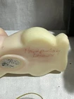 The Fenton Burmese Glass "Daydreaming Bear" figurine is a beautifully hand-painted and signed piece that features a floral pattern and a unique UV-glow feature. This decorative art glass piece was made in the 2000s using a pressed glass technique, showcasing a multicolor design with intricate details. The bear theme and Fenton brand add to its charm, making it a vintage addition to any glassware collection. At only 4.25 inches in length and 2.25 inches in height, this handmade figurine is a delightful and whimsical accent for any home decor. Can see slight glow from uv Halloween bulb I have but lighting not dark enough to show full effect Has slight scuff on face see photos