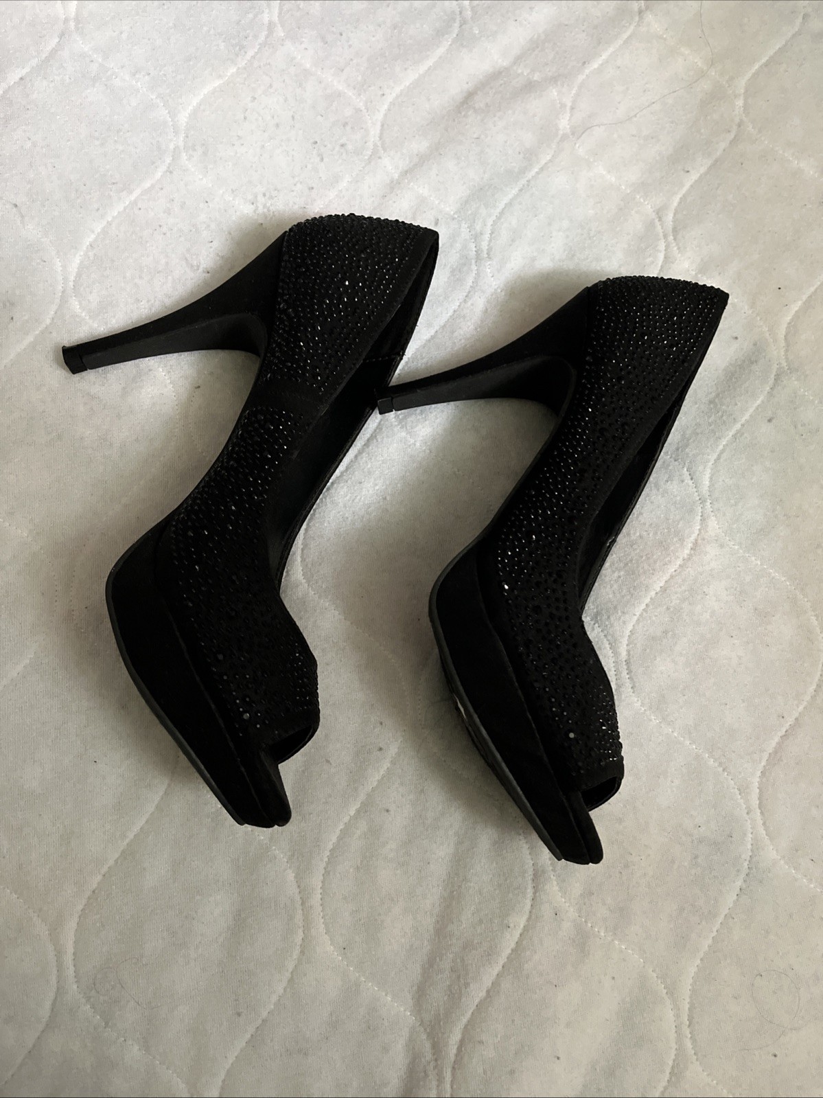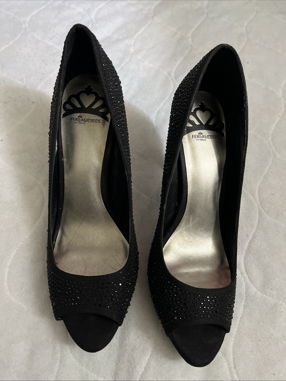 The Fergalicious by Fergie Women’s High Heel Shoes in size 7.5m are a stylish and eye-catching pair of black pumps adorned with glittery bling. Made with synthetic materials, these heels exude glamour and sophistication, perfect for adding a touch of sparkle to any outfit. With a focus on style and fashion-forward design, these shoes are sure to make a statement and elevate any ensemble.