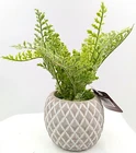 Fern Ceramic Pot Planter Diamond Pattern White Gray Tan Artificial Floral Faux Dirt 10". Condition is Brand New/Unused. Measurements are approximately 10 inches tall by 4 inches wide. The fern has a soft supple feel to it. We believe it may be a foam plastic mixture. The pot is ceramic with fake dirt. Please check out the photos in this listing for further information. If you have any questions or concerns, please contact us. Thank you for your support. Please check out The Burly Owl Lady eBay store for more home decor goodies! Shipped USPS. We ship vintage and new items. We carefully pack with care to ensure the safety of each item. We do not pass these packaging costs onto the buyer. Furthermore, we do not charge any extra fees for handling. We only charge for the USPS shipping charge. We do monitor shipping prices frequently. In most cases, we do find the USPS to be the most inexpensive way to ship our products. We try to be as detailed as we possibly can in our photos and descriptions. We try to mention any imperfections in our vintage items. We may miss things from time to time or our photos may not be enough clarification for you to see the item. We will be glad to answer any questions or send you more photos. If at any time, you have a question or issue, please contact us immediately. We will contact you within 24 hours. We want to make sure you have a good experience in purchasing any of the products. If you are happy with your purchase, please leave feedback. It will help us to grow and offer more great items in our store! Thank you for your interest in one of the many products in our eBay store! Renee Burly Owl Lady