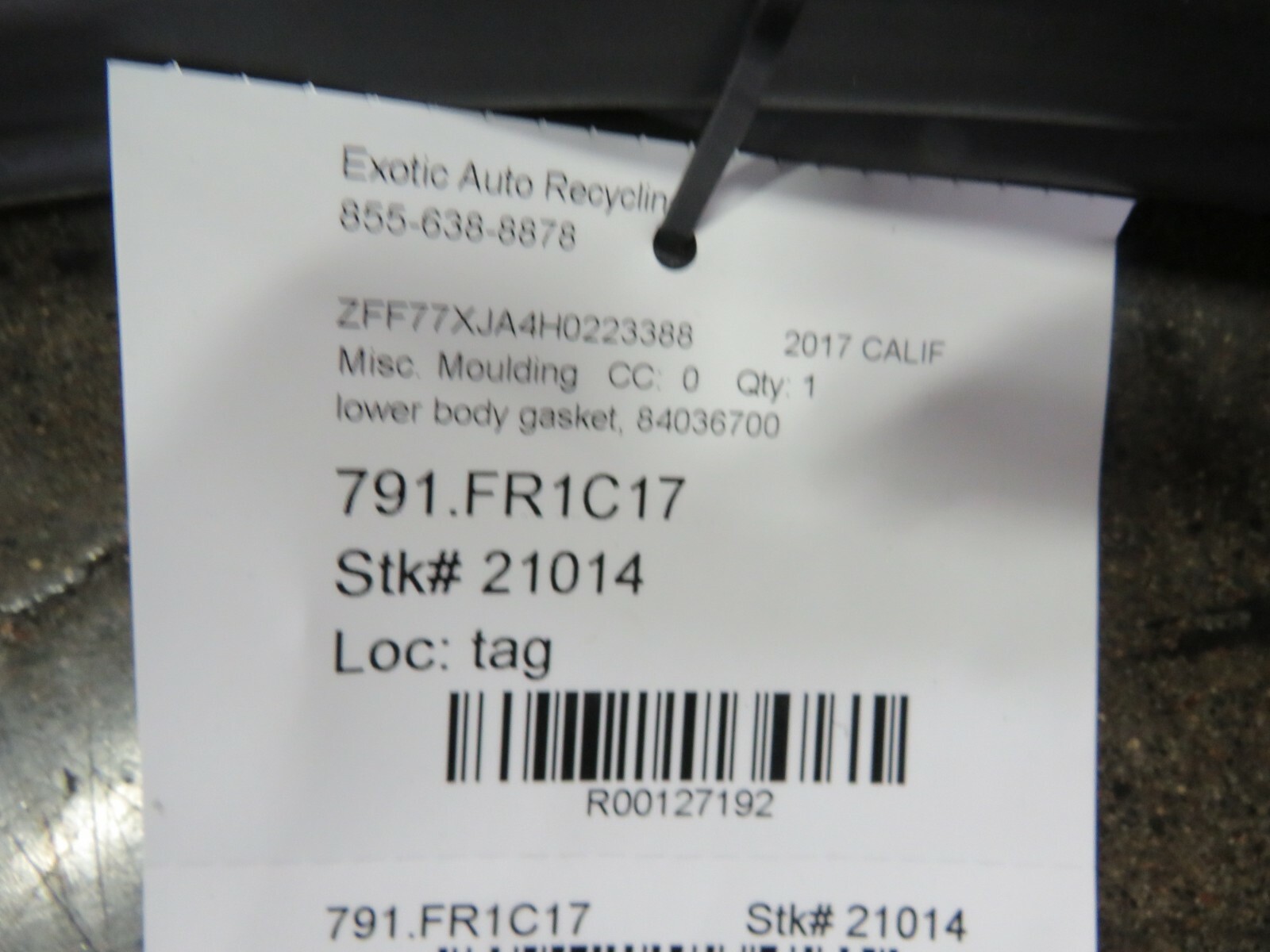 100% SATISFACTION GUARANTEED WARRANTY HOME Feedback View All Listings Contact Us Menu Categories Capristo Exhaust Systems RTuned Carbon Fiber Ferrari 308 Ferrari 328 Ferrari 348 Ferrari 355 Ferrari 360 Ferrari 456 Ferrari 458 Ferrari 488 Ferrari 550 Ferrari 575 Ferrari 599 Ferrari 612 Scaglietti Ferrari California Ferrari Enzo Ferrari F430 Ferrari FF Ferrari Mondial Ferrari Testarossa Lamborghini Aventador Lamborghini Gallardo Lamborghini Huracan Lamborghini Murcielago Maserati 3200 Maserati Ghibli Maserati Granturismo Maserati M128 GT.Coupe Maserati M138 Spyder Maserati M139 Quattroporte McLaren Newsletter Add our store to your Favorites to receive our email newsletters about new items & special promotions. Sign Up Product description Ferrari California T, Lower Door Body Gasket Moulding, Used, P/N 84036700 This part is used and in good condition. Please look at all of the pictures prior to purchase. If you have any questions please feel free to call us or send a message. The items listed in our online store represent a fraction of our actual inventory, If you need any other parts for Ferrari, Maserati, Lamborghini please contact us and we can make arrangements to create a listing. All parts are sold with a 90 day replacement warranty, and a 30 day satisfaction guarantee. All return shipping fees are to be paid by the buyer. We Offer World Wide Shipping All shipping prices listed are for the Continental United States. For shipping quotes to Hawaii, Alaska, Puerto Rico, Guam, or Military Bases APO / AE, and all International locations please contact us in advance. AK Payment Shipping Returns Payment We accept all major forms of payment. Visa, Mastercard, and American Express. PayPal is the preferred method of payment. We as well accept Wire Transfer Payment, Any questions please send us a message. Shipping All shipping prices listed are for the Continental United States. For a shipping quote to Hawaii, Alaska, Puerto Rico, Guam, or Military Bases APO / AE, please contact us in advance for a shipping quote. For all International shipping needs please contact us for a quote. Return All store items come with a ninety (90) day mechanical warranty, and a 14 day satisfaction guarantee. All return shipping fees are to be paid by the buyer. HOME Feedback View All Listings Contact Us Copyright © 2020 - Exotic Auto Recycling