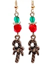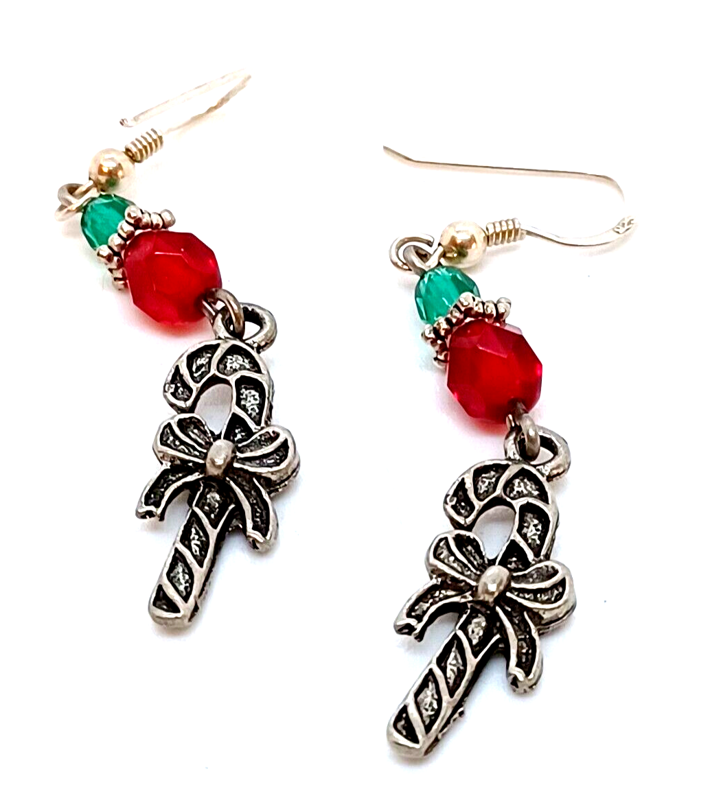 Add some festive flair to your holiday outfit with these fun and unique Candy Cane Earrings. The asymmetrical design features a silver bow and green and red acrylic beads in the shape of candy canes. The dangle/drop style and hook closure make them easy and comfortable to wear. These earrings are perfect for anyone looking to add a touch of holiday cheer to their outfit without being too over the top. They are also a great gift for a friend or loved one who loves holiday-themed jewelry.
