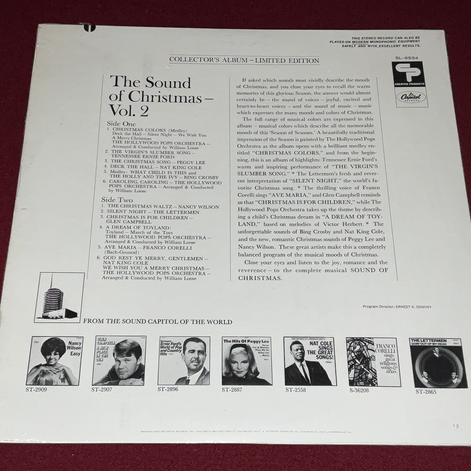 Celebrate the holiday season with the soothing melodies of "The Sound of Christmas Vol. 2," featuring a collection of festive tracks from renowned artists like Bing Crosby, Nat King Cole, and various others.Released in 1967 by Capitol Records, this 12" LP is a treasure for any vinyl enthusiast or holiday music lover. The album is presented in its original cardboard sleeve, showcasing a multicolor design that captures the spirit of the era. The record is graded as Very Good Plus (VG+) and plays at 33 RPM, delivering high-fidelity stereo sound that immerses listeners in classic holiday charm. With features including the original cover and a limited edition collectors album edition, this piece is a testament to the timeless allure of Christmas vinyl. Whether it's to complete a collection or to set the mood for your holiday gatherings, this LP is a warm and welcoming addition.