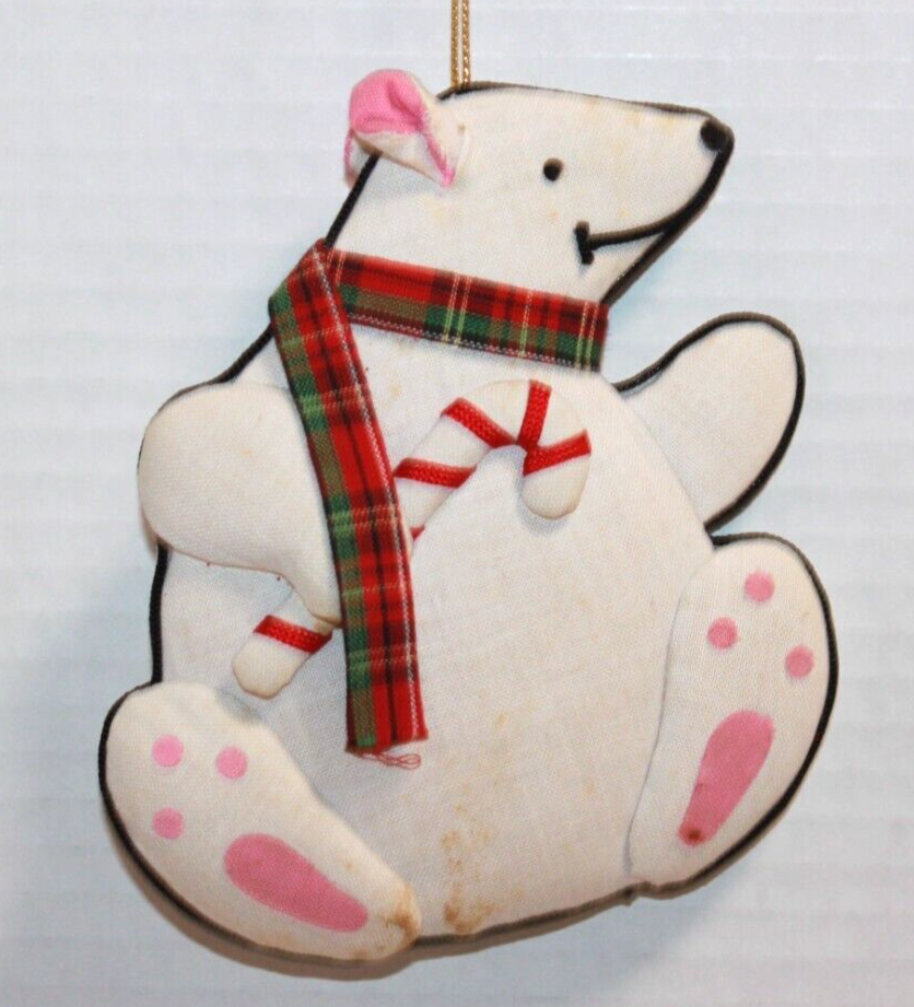 Fabric Polar Bear With Candy Cane Christmas Ornament. approx. 4 1/2" . Any photos used are of the item that you will be receiving, they are not stock photos. Will combine shipping costs for multiple purchases. Shipments to the Continental U.S. only. Sorry, No APO or FPO. Please pay promptly. Please visit our Ebay store for more great items. Combined shipping is not automatic. If you're not sure how to do it, Please contact us and we'll be happy to help.