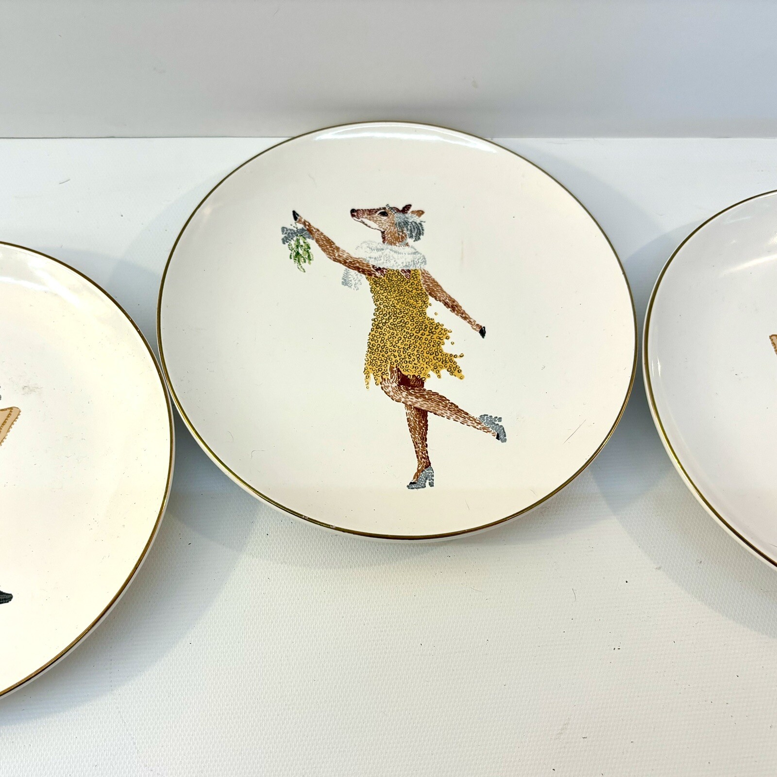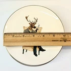 Add a touch of elegance to your dining table with this set of three Threshold Appetizer Holiday Plates. The plates feature a beautiful deer pattern in a contemporary style, perfect for any occasion. The gold rim adds a touch of sophistication, making them ideal for Christmas, parties, winter, housewarmings, and more. Crafted from high-quality ceramic, these plates are durable and stackable. * Stoneware * Dishwasher and microwave safe. May get hit in microwave. • Size: 6” diameter * Condition: Great pre-owned, vintage condition, with little wear.