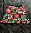 Fun and festive holiday themed sweater skirt! Design: Black base with festive holiday ornaments in red, white and green colors. Snowflakes, holly, reindeer and Santa belts are included in the designs. Pre-Owned but in Pristine Condition! 100% Acrylic Measurements (lying flat, unstretched) Size Medium: 13 inches across the waist and 16.5 inches top to bottom DM me with any questions or to make an offer today!