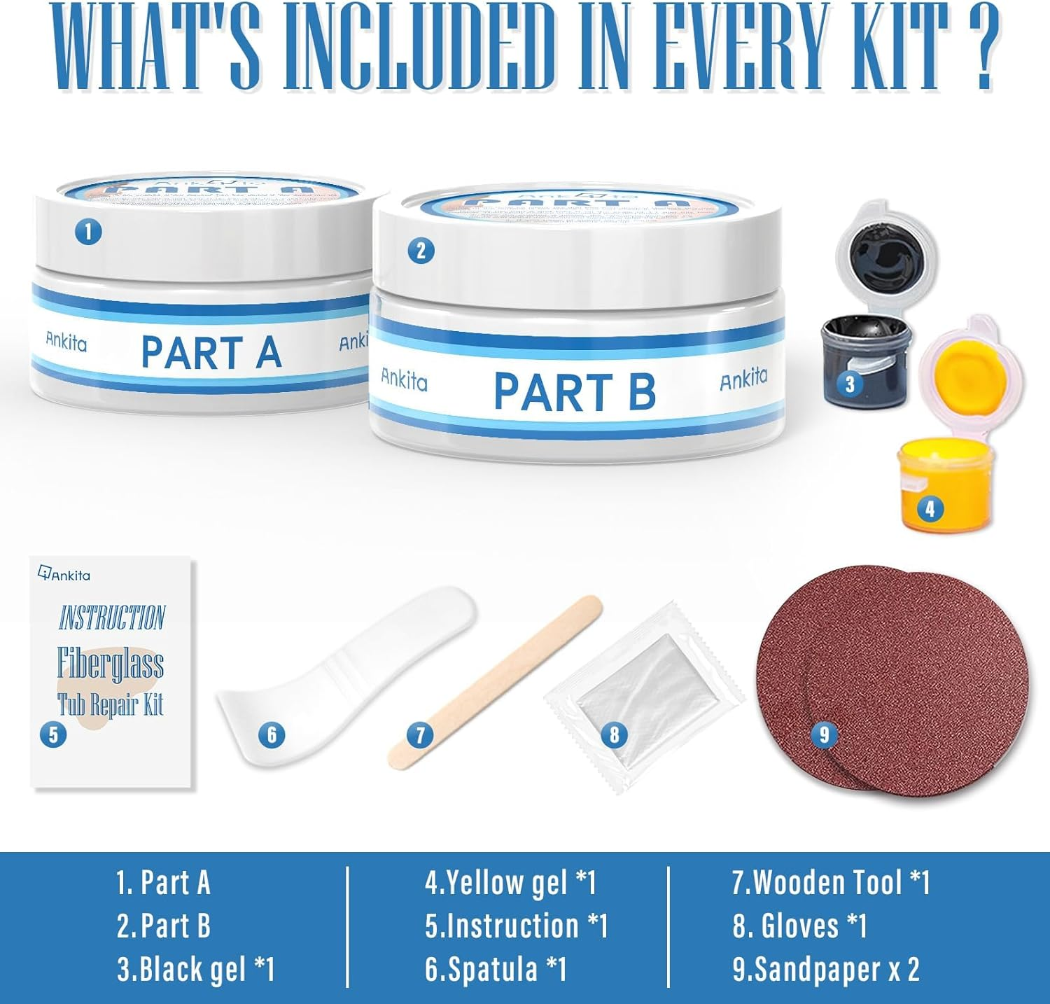 Store New Arrivals Add to Favorite View Feedback Contact Fiberglass Tub Repair Kit (Color Match), 3.7Oz Fiberglass Shower, Porcelain Sink and Acrylic Bathtub Repair Kit, Quick to Fix Cracks, Chips, Dents, Holes on Bath Tub & Toilet, Almond/Biscuit/Bone Description Unit Count 3.7 Ounce Item dimensions L x W x H 5.1 x 2.3 x 2.3 inches Number of Items 1 Compatible Material Fiberglass, Acrylic, Enamel, Porcelain Part Number 741311036776 Color Color Match Water Resistance Level Waterproof Brand Ankita Material Resin Country of Origin China Style Color Match Item Weight 6.4 ounces Batteries Included? No Item Package Quantity 1 Batteries Required? No Surface Recommendation Porcelain,Shower,Sink,Tile,Tub Manufacturer Ankita Item Form Paste Product Dimensions 5.1 x 2.3 x 2.3 inches Included Components 5 High Viscosity and Waterproof: Cures to be firmly adhered to the tub, sink; dries fast; forms a waterproof, protective layer on the surface for a scratch, chip and rust resistant finish with great heat retention; will never change color Excellent Color Match: Pairs well with white, arctic, milk white, cream, dune, biscuit, almond, bone, celadon, heavy gray, ice gray, cashmere, thunder gray and black; seamlessly repairs chips, cracks, holes, etc; no primer and additional paint is required Safe Formula: Made of safe raw materials, no odor, skin-friendly and safe for anyone; pigments can greatly blend with the product and solidify, forming an insulating layer on the surface, make it never dissolve in water; for fiberglass, acrylic, enamel Cost-effective: No need to pay expensive bills from the repair shop any more! Ankita bath tub repair kit works well with any bathtub paint and can give you professional results, perfectly saving money and time for you Enjoy the Results, or It’s on Us: Your satisfaction is important to us! If you don’t get the results you want from our product, we will solve your misgiving includes resupply flawless product or make up all value of your order Product Description Easily Matches Color of Fiberglass and Acrylic Tubs With Ankita fiberglass tub repair kit, you can perform the repairs yourself ! Everyone can easily do this by themselves without having to change an expensive bathtub. Suitable for anyone, including beginners and non-professionals. Ideal for tub, bathtub, showers, sinks and more in bathroom Add and Mix Colored Tints to Match Your Tubs, Sinks and Tiles When add the dye to the repair formula, you can achieve a range of common tub colors, including shades of white, arctic, milk white, cream, dune, biscuit, almond, bone, celadon, heavy gray, ice gray, cashmere, thunder gray, black,etc. Perfect for Any Different Types of Damage No trace of repair, non-cracking, non-shringking, waterproof and having super strong adhesion, our fiberglass tub repair kit will help you achieve repairs easily and permanently and get rid of the trouble of annoying cracks, chips, scratches, dents on porcelain, fiberglass, acrylic, etc. Get Professional Results Easily and Quickly with Our Fiberglass Tub Repair Kit Ankita bathtub repair kit is long-lasting and dries quickly without trace of repairs, suitable for high-gloss finish surface, giving you the best results. Easy Steps to Match the Colorful Tubs and Showers Excellent for Excellent for Many Areas WATERPROOF FORMULA IS WASHABLE AND SUITABLE FOR USE ON TUBS, TILESSINKS AND TOILETS! I have no previous repair experience, can I use this kit? Of course you can, our kit is simple and easy to use, suitable for non-professionals. Just follow the instructions in the manual and you can successfully complete the repair! And you can seek help from our experts if you need it. What colors can this kit repair? Our kit is suitable for white, arctic, milk white, cream, dune, biscuit, almond, bone, celadon, heavy gray, ice gray, cashmere, thunder gray, black, etc. If I need to mix the color I want, what shouId I do? Do I need to have any experience? Dear customer, you do not need to have experience, our professional team is always here to help you to mix the color you want if you need. We know mixing colors can be challenging, but you'll be successful with the help of our support team. How long does it take to dry? Does this dry with a matte or shiny finish? It depends on the size and amount you apply. You can let it set over night just to be on the safe side. And It's a shiny finish, matching the surface of tubs, sinks, tiles, etc. ABOUT US We offer the best prices around on high quality products. Our E-store includes media such as books, movies, music and games while offering electronics, toys, sporting apparel, clothing, tools, general home, garden items and more. SHIPPING We are always working hard to ensure your package arrives as soon as possible. Please understand that some factors like weather, high postal traffic, and the performance of shipping companies are outside of our control. We offer free shipping to the lower 48 states and ship within 2 business days of payment, usually sooner. We do not accept P.O. Boxes. Please provide a physical address. RETURNS We offer a 30-Day Return Policy on items which you are not completely satisfied with. You have the option for a full-refund or an exchange of the item. No returns are available on items shipped outside of the USA. PAYMENT We accept PayPal. CONTACT US This page content is yet to come Please ad us to your favorite seller and visit again later Thank You CUSTOMER SATISFACTION We try our very best to make sure every customer is completely satisfied. If there's a problem, message us! We're happy to help.