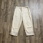 Field Gear Women’s Size 10 Beige Capri Pants Embroidered Hem Some small stains on the front, difficult to photograph but they are noticeable Waist Across: 15 inches Rise: 10 inches Inseam: 24 inches