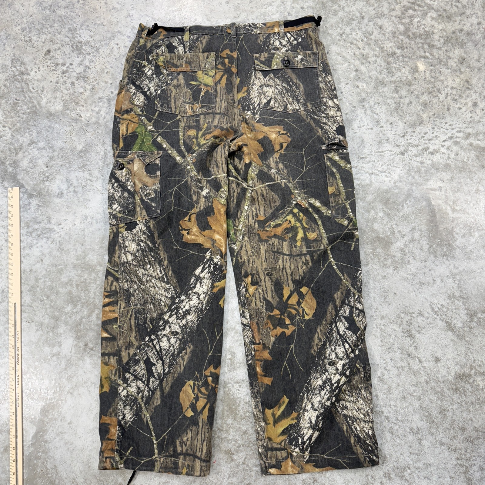 FieldStaff Cargo Pants Mens 40 Camo Hunting Outdoor 6 Pocket Woodland Realtree Condition: Good pre-owned condition with light wear and minor signs of use. No major stains, holes, or damage observed. All buttons and closures intact. Material: 60% cotton / 40% polyester as indicated on the interior tag Classic heavy-duty outdoor camo pants with allover tree and leaf Realtree-style camouflage 6 pocket cargo design for ample storage, including two front hand pockets, two back pockets with button closures, and two side cargo pockets Adjustable drawcord hems for custom fit and versatility in the field Button/zip front closure and reinforced stitching for durability Tag size: 40 (Mens) FieldStaff branded interior label and care label Made in Nicaragua Great for hunting, camping, outdoor work, or everyday rugged wear