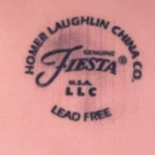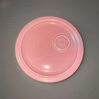 Add a pop of color to your snack time with this Fiesta Rose snack plate. Made of durable stoneware, this 10.5" round plate features a solid rose pattern that is perfect for any occasion. The plate is a vintage piece from the Homer Laughlin Fiestaware product line, made in the United States using mass production techniques. The backstamp is printed and the plate is not handmade. This one-piece set includes a snack plate and is in excellent condition.