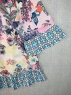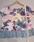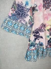 Welcome to Aspen Crossing, the place for modern western bohemian style reflecting the rugged beauty of our American West Figueroa & Flower Blouse Womens Large Pink Floral Off Shoulder Boho Top Condition: Gently worn, no visible flaws Material: 100% polyester Pink background with multicolor floral print throughout Bohemian style with wide bell sleeves and ruffled hem Off shoulder neckline with elastic for comfortable fit Blue and white contrast floral print trim at cuffs and hem Tag size: Large (Womens) Style code: KER1556 Hand wash cold, lay flat to dry, warm iron on reverse if needed Made in Vietnam Great feminine and lightweight summer top—perfect for vacation, beach, or casual wear Please note: While every effort has been made to reproduce actual colors in photos, variations may occur on your screen. 57-4012