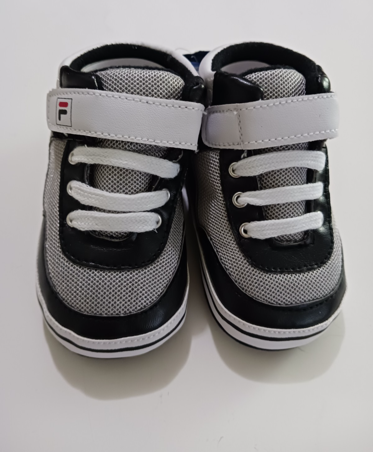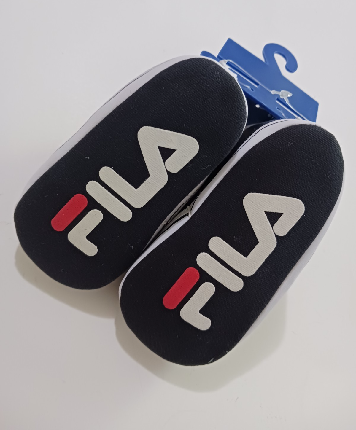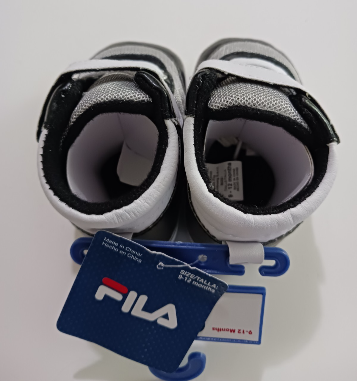 Tiny scuff marks on bottom of one shoe. Otherwise great condition. New with tags, well made by PS Brands. Man made materials, Polyester and Cotton. Size 9-12 Months, 5" long.