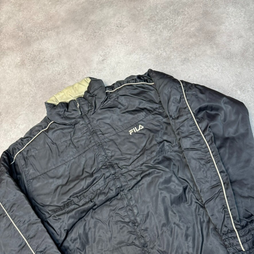 Fila Puffer Jacket Mens Large Full Zip Outdoor Padded Coat, Black Condition: Used, See Photos for More Details - Marked Collar Measurements P2P: 25" Length: 30" Inside Arm: 20" Instagram: OpenOutfit SKU: 99527