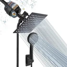 Style Modern Shape Square Material Stainless Steel Finish Type Matte Black About this item HEALTH CARE SHOWER SYSTEM: NearMoon Filter shower head Combo are composed of premium stainless steel and food grade ABS production. This shower head filter set adopts the latest filtration technology and high-quality filter Cartridge, which effectively filters impurities in the water, allowing you and your family to take a shower in clean water. STAINLESS STEEL SHOWER HEAD: NearMoon Shower Head is made of high quality sus304 stainless steel, durable and rust resistance. It has ultra-slim design and high pressure water flow. And the swivel ball at the top of shower head allows you adjust it to any angle you like. 5 SETTINGS HANDHELD SHOWER: NearMoon handheld shower head has 5 functions for you to choose: Rainfall shower, power massage, waterfall mist, shower with power massage, and shower with waterfall mist. Choosing any setting you will get a waterfall, relax and pleasing shower! 5FT STAINLESS STEEL HOSE: Offer superior flexible and longer reach hose than other hand showers. It is also ideal for Bathing , Washing Pets and Cleaning applications. 1/2” connector fits with any universal shower arm. Solid metal Hose Nuts, filter and washer ensure reliable leak-proof connection. Style Modern Shape Square Material Stainless Steel Finish Type Matte Black Setting Type Waterfall, Massage Installation Type Wall Mounted Flow Rate Description 1.8 GPM Color Matte Black Product Dimensions 8"L x 8"W Hose Length 1.5 Meters Number of settings 5 Number of Jets 1 Special Feature Filtration System UPC 763971490064 Manufacturer NearMoon Part Number NM-SHSCB+FLT-MB8 Item Weight 4.2 pounds Item model number NM-SHSCB+FLT-MB8 Batteries 1 Lithium Polymer batteries required. (included) Finish Matte Black Flow Rate 1.8 Gallons Per Minute Special Features Filtration System Included Components shower head Batteries Included? Yes Batteries Required? Yes