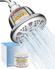 Shower Head Filter for Hard Water: Do you suffer from dry skin, weak hair, or unpleasant smells coming from your showerhead? Look no further than our revolutionary shower head filter system, featuring a cutting-edge blend of the most patented KDF-55, advanced Calcium Sulfite, Vitamin C, and More. water softener shower head effectively removes chlorine, fluoride, heavy metals, and other contaminants from your shower water, providing clean and pure water for your enjoyment High Pressure Shower Head with 7 Settings: Our filtering shower head features an impressive 7 spray modes, offering flexibility to choose between targeted massage and a range of relaxing spray options. With upgraded air-induction technology, our showerhead provides powerful spray even at low water pressure and flow circumstances. Enjoy the perfect combination of relaxation and rejuvenation with our high-pressure shower head High Quality & Premium Material: Featuring a beautiful chrome finish, this water softening showerhead effortlessly coordinates with a variety of decors and fixtures, adding a touch of sophistication to any bathroom.The angle-adjustable brass swivel ball connector allows for easy adjustment of the rain shower head, ensuring a personalized shower experience. Equipped with anti-clog nozzles, it prevents lime and hard water buildup, ensuring consistent water flow for a refreshing and relaxing shower Reliable & Innovative Design: With the ALL-IN-ONE design, even tall people can stand comfortably without having to bend down while enjoying a healthy and filtered shower experience. The transparent shower water filter cartridge provides the added convenience of allowing you to see what's inside, enabling you to monitor when it is time to replace it. This innovative feature ensures that you always have access to the cleanest and healthiest shower water available 1-Minute Tool-Free Installation: This fixed shower head filter features universal G1/2" threads, which can be easily attached to any standard shower arm or extender, allowing for effortless installation. Enjoy the ease of installation and the benefits of clean, refreshing water, all in one beautifully designed package. Say goodbye to hard water problems and embrace the luxury of a refreshing and rejuvenating shower with the Filtered Shower Head