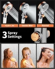 2024 Latest Unique Design: handheld shower head adopts the latest revolutionary design with double-sided, which pairs with the best pouring water flow Angle of 45°, thus ensuring the independent operation of A/B side, achieving each mode's best water outlet effect, so that you can enjoy the hotel bath feelings in the low water supplies of House or apartment. You can adjust the angle of the head or fold it back-and-forth to get different pressure and settings Purify Your Water, Enjoy Your Shower: This filtered shower head built-in high-density filtration system, effectively removes chlorine, fluoride, heavy metals, rusts, sediments and other harmful substances in your bath water. The softening and purified water make your skin softer and hair smoother, keeping your families enjoying natural SPA at home 3-Mode Adjustable, Enjoy the Fun of Different Flow: 3 Spray modes ideal for all your families. Hydro jet mode pressurizes the water to massage your skin, allowing you to experience the great feeling of being wrapped in warm water. Rainfall mode achieves full water output, bringing you a relaxing shower experience. Gentle mist mode atomizes water into millions of tiny droplets, covering 10X more surface areas than ordinary shower, but uses 70% less water. Make a comfortable SPA for your skin Start Your Day with Impressive Water Pressure: high pressure shower head adopts micro nozzle technology to make the outlet holes smaller and denser, thus improving the speed of water flow, thereby increasing 200% water pressure and saving up to 30% water than ordinary hand shower. And the strength of the water flow can be freely adjusted by the knob, baby skin friendly 1 Minute Installation, Be Your Family Hero: The hand held shower set comes with absolutely everything you need for installation, including double-sided shower(built-in filter cartridge) x 1, 59"shower hose x 1, adjustable shower bracket x 1, extra filter cartridge x 1, Teflon tape x 1 and mineral beads x 0.5 oz. Following the clear installation guide, you can install it by yourself as easy as screwing in a light bulb in a few minutes