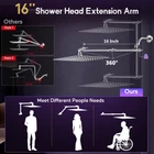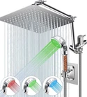 Filter Purification Water Quality:Our shower adopts transparent design and uses high -density and high -quality filter stones, which can effectively eliminate residual chlorine, remove impurities, and make water cleaner. Soft pure water makes your skin softer, smoother hair, and keep your body balance. Temp Controlled LED Color Changing:No more worrying about burning babies or pets! The LED light changes of our hand-held shower are temperature controlled, and the visible temperature is more reassuring. At the same time, it uses hydroelectric power and does not increase the electricity bill!(<90℉ green; 91 - 105℉ blue; 106-122℉ red) 16 Inches Rainfall Shower Head Extension Arm:Goodbye to bent over showers! Our extension arm can not only raise but also extend the length. So, we can stretch our arms freely without worrying about getting hurt!At the same time,the tight link and setting screws greatly improve the load-bearing capacity of the extension arm. High Pressure Rain Shower Head: Our rainfall shower heads are made of stainless steel and 121 self-cleaning silicone nozzles for ultra-high service life. The combination of ultra-thin design and air pressurization technology makes the shower with superior high pressure water flow, giving you a spa-level shower experience! Easy Installation & After-sales Service: No plumber required, just a few minutes by referring to the installation instructions and installation videos. If you need any help, we have a special customer service to answer your questions, your satisfaction is our biggest motivation!