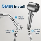 Super Shower Enjoyment: The shower head with handheld has four modes: full body rainfall mode, mixed mode, rainfall mode and strong mode. Multiple modes of this high pressure shower head can wash away fatigue, meet various needs, and bring comfort to the whole body. Intuitive Spray Adjustment: The shower head high pressure has a one-touch switch design. The one-touch switch button simplifies daily operations in the bathroom. Just push the button to make the water flow or stop. shower head focuses on the feeling of showering and provides more convenience in usage. Want to save water? We're here to help!This filter shower head saves up to 30% of water compared to traditional shower heads.The filter shower head is equipped with a unique pressure boosting technology to prevent dirt accumulation. The high pressure shower head is equipped with regularly arranged holes to ensure water consumption and water pressure, and comfortable pressure boosting. Shower Filter Head for Hard Water: The water filter shower head has an 18-layer filtration system to soften hard water and prevent skin and hair damage.It has an 18-layer filtration system that effectively removes chlorine, fluorine, heavy metals and impurities, purifies and softens hard water.The filter shower head comes with four extra filters, it is convenient for you and your family to enjoy a clean and healthy shower experience. Package Includes: Shower head, 18 stages filter cartridge (extra*4), angle adjustable bracket, stainless steel hose, spare gasket, extra Teflon tape, installation is simple and clear, and can be installed quickly.
