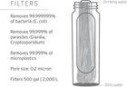 Filtro de agua 1L, ultracompacto y versátil, gris oscuro Durabilidad extrema US Protege contra el 99,999999 % de las bacterias (incluidas E. coli, Salmonella), el 99,999 % de los parásitos (incluidos Giardia y Cryptosporidium), el 99,999 % de los microplásticos, el cieno, la arena y la turbiedad Rendimiento mejorado del microfiltro: nuestra membrana rediseñada y el accesorio de retrolavado personalizado significan un mejor rendimiento contra la arena y el cieno, manteniendo un gran flujo a largo plazo Ultracompacto, nuestro filtro reconfigurado es pequeño pero poderoso con un kit súper empacable que no sacrifica el peso ni el espacio Extrema durabilidad: los materiales de primera calidad 2 veces más gruesos lo hacen más resistente y ultra a prueba de fugas Altamente versátil significa que el sistema de botella exprimible plegable está diseñado teniendo en cuenta cada ocasión; úselo como botella, exprima agua a través de ella en recipientes para cocinar u otros artículos para beber, úselo como pajita, retire el filtro para usarlo como un sistema de almacenamiento o conéctelo a otros sistemas de la serie Peak