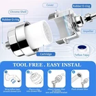 Filtro de cabezal de ducha de 20 etapas: filtro de cabezal de ducha para agua du FILTRACIÓN REAL DE ALTA RESISTENCIA - EXPERIMENTE LA LIMPIEZA MÁS LIMPIA: Diseñado inteligentemente para maximizar el espacio con un 80 % más de medios de ducha, este es el filtro de agua de ducha que debe obtener si desea que cada ducha sea una experiencia refrescante y limpiadora libre de baba, sarro, suciedad, óxido, cloro y toxinas que de otra manera arruinarían el cuero cabelludo, el cabello, las uñas y la piel. SOLO MENOS 0,09 CENTAVOS AL DÍA: ¿CUÁNTO VALE TU SALUD? Nuestro filtro de cabezal de ducha con 20 etapas de filtración de agua MÁXIMA hace que la piel sea MÁS SUAVE, las uñas MÁS FUERTES y el cabello MÁS BRILLANTE. Filtros de ducha EFECTIVOS para eliminar el cloro y el flúor, metales pesados y otros sedimentos. Nuestro filtro de ducha con vitamina C y E mantiene el eczema, la piel seca y la caspa acorralado CUIDADO PREMIUM: COMIENZA A REJUVENECER INMEDIATAMENTE LA PIEL, EL CABELLO Y LAS UÑAS:¿Cuero cabelludo seco e irritado? ¿Piel agrietada y escamosa? Es probable que el agua sea la culpable. El filtro de ducha de alto rendimiento elimina los olores desagradables y las impurezas, alivia la fatiga rápidamente, retrasa el envejecimiento y suaviza la piel. Este suavizador de agua con filtro de ducha actúa como humectante, purificador, suaviza y proporciona la mejor sensación para la piel sensible. SE ADAPTA A CUALQUIER DUCHA - INSTALACIÓN MÁS FÁCIL SIN HERRAMIENTAS: Instalación sin herramientas. Se instala en minutos con sólo apretar una conexión con la mano. Filtro de ducha para agua dura Se adapta a cualquier tipo de ducha estándar, incluidas las duchas de pared, de lluvia y de mano. Protege filtrando toda la ducha de la casa del agua sucia. REGALO EXQUISITO Y ÚNICO: es una excelente opción de regalo para familiares, amantes y amigos. Con este filtro de ducha de 20 etapas, obtienes una caja de regalo premium con filtros, cintas de teflón, 2 almohadillas impermeables y manual de instrucciones.