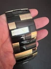 This is a beautiful Wristwatch by the maker DKNY Set in Solid heavy metal checkered strap with a gorgeous gold Watch Face and goldTone Watch Hands marked on the back 'SOLID STAINLESS STEEL Strap and watch measures approx. 19 cm in length The watch face measures approx. 4 cm wide In good condition Battery has been replaced recently and keeps time Would make a lovely gift for that someone special PLEASE NOTE THAT I DO MY UP MOST TO MAKE SURE ALL ITEMS ARE IN GOOD CONDITION UNLESS OTHERWISE STATED BUT THEY ARE MOSTLY ANTIQUE OR VINTAGE ITEMS SO A LITTLE AGE RELATED WEAR IS TO BE EXPECTED, PLEASE DO TAKE THIS INTO CONSIDERATION WHEN LEAVING FEEDBACK. IF NOT BOXED IN THE PHOTO IT WILL BE WRAPPED IN BUBBLE TO PROTECT IT IF I HAVE ANY-BOXES AT THE TIME I WILL SOMETIMES BOX THEM BUT UNLESS STATED IT WONT BE IVE BEEN ON EBAY ALONG TIME MY CUSTOMERS ARE VERY IMPORTANT TO ME SO PLEASE ASK ME IF ANYTHING IS NOT RIGHT AND I WILL TRY AND SORT IT OUT ASAP ALSO IF FOR ANY REASON YOU ARE UNHAPPY WITH YOUR ITEM, PLEASE LET ME KNOW AND I WILL BE HAPPY TO ISSUE A REFUND UPON RECEIPT OF THE ITEM . I HAVE A NO QUIBBLES RETURN POLICY. AND LASTLY THANKYOU SO VERY MUCH FOR YOUR CUSTOM