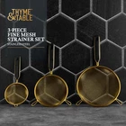Introducing the Thyme & Table 3-Piece Fine Mesh Gold Strainer Set, a stylish and versatile addition to your kitchen utensils. Crafted with precision, these strainers feature a luxurious gold finish that adds a touch of elegance to your cooking routine. The set includes three different sizes to accommodate various straining needs, whether you're sifting flour, draining pasta, or straining sauces. Each strainer is equipped with a fine mesh design, ensuring efficient filtration of even the smallest particles. With their ergonomic handles, these strainers provide a comfortable grip for easy use. Upgrade your kitchen essentials with the Thyme & Table Fine Mesh Gold Strainer Set and enjoy precise and efficient straining for all your culinary creations. Thyme & Table 3-Piece Fine Mesh Gold Strainer Set Great for sifting flour or straining sauces Ergonomic handle Efficient filtration Hand wash recommended