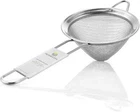 DESIGN: This fine mesh cocktail strainer, otherwise known as tea sieve, is bar and kitchen tool necessities. Designed with a cone-shaped fine sieve for funneled flow of liquids, makes it easy to filter drinks, while keeping it safe from spilling. With a hook that allow it to perch securely over glasses and mixing bowls for hands-free use. It have a heat-safe handle, not easy to tip over on large-diameter containers. OPERATION: Attach your main Hawthorne strainer or Julep strainer to the cocktail shaker or mixing glass. Then hold the fine mesh cocktail strainer by its handle over the rim of your glass. Pour the drink through the main strainer and the fine strainer into your glass. The large particles, such as ice or chunks of fruit are caught by the primary strainer while anything that comes through it will be caught by your secondary mesh. Enjoy your perfectly smooth cocktail. MULTIFUNCTON: Not only secondary mesh strainer for cocktail, but also use it to filter coffee grounds, strain tea leaves, straining the solids from stocks and broths or sift flour, for dusting baked goods. QUALITY: Fine mesh sieves are made of food-grade 304 stainless steel. The rim is polished with a mirror finish. Won't rust, break and resistant to falls. With its slim, easy-to-nest profile, a mesh strainer doesn't take up much space.