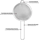 Fine Mesh Sieve Strainer Stainless Steel Cocktail Strainer Food Strainers Tea St 1. Unbeatable Precision Straining:Our fine mesh strainer with handle is meticulously crafted with a dense and ultra-fine Stainless Steel mesh that ensures nothing escapes through the strainer but pure, smooth liquids and ingredients. Say goodbye to lumps, impurities, and unwelcome bits in your tea, coffee, juice and cocktail. The sieve strainer allows for optimal liquid flow while trapping the smallest particles, resulting in flawless textures and delightful culinary creations. 2. Premium Food-Grade Materials:We understand the importance of using safe and durable kitchen strainer. That's why our small strainer fine mesh are made from high-quality, food-grade 304 stainless steel. This ensures the mesh strainers for kitchen are resistant to rust, corrosion, and stains, providing you with a reliable straining solution that will stand the test of time. 3. Ergonomic Handle for Effortless Use: Straining should be a comfortable and enjoyable task, not a strain on your hands. Our hand strainers for kitchen features a specially designed ergonomic handle that fits comfortably in your hand, providing a secure and non-slip grip. This means no more discomfort or hand fatigue, even during extended straining sessions. 4. Easy to Clean and Dishwasher Safe:Cleaning up after a cooking session can be a hassle, but not with our sieve strainer! The strainers fine mesh construction prevents food particles from sticking, making it effortless to clean by hand or in the dishwasher. Spend less time cleaning and more time enjoying your tea, coffee, cocktail, juicing and so on. 5. Versatility Beyond the Kitchen: While our mini small mesh strainer is an essential kitchen tool, its versatility extends beyond culinary applications. Use this sieve sifters for food, tea, coffee, cocktail, juicing and so on. Its multifunctional nature makes it a valuable fine mesh sieve for every aspect of your creative life. Besides, the elegant design, functionality, and premium materials make strainer a unique and practical gift that will be appreciated by any cooking aficionado.