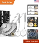 Fine Mesh Strainer and Fat Skimmer Spoon Set, Multipurpose Metal Strainers fo...