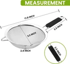 Fine Mesh Strainer with thermo plastic rubber handle - Sieve Fine Mesh Stainless Steel - Ideal to Sift Flour, Icing Sugar, Fruits and Vegetables (5.5 Inches) Product Details Size: 5.5 Inches Brand: KAFOOR MPN: MS05.5-VH-TPR UPC: 797716555381 EAN: 0797716555381 Material: Stainless Steel Color: Steel Brand: KAFOOR Style: Strainer Product Dimensions: 13.6"L x 6.3"W x 2.4"H Material: Stainless Steel Color: Steel Brand: KAFOOR Style: Strainer Product Dimensions: 13.6"L x 6.3"W x 2.4"H Item Weight: 0.11 Kilograms Is Dishwasher Safe: Yes Manufacturer: KAFOOR UPC: 797716555381 Item Weight: 3.77 ounces Country of Origin: China Item model number: MS05.5-VH-TPR Date First Available: April 1, 2023 Metal strainer fine mesh - Our high grade stainless steel food strainer won`t bend or rust. Perfect Kitchen Strainer - This fine mesh sieve will help you in handling all your straining, sieving and sifting tasks. So its a best strainer for juicing, quinoa, rice, fruits, dry baby cereals, tomato sauce, flour, icing sugar etc. is not a problem anymore! Strainer with handle - Our fine strainer for liquids features a heat resistant thermoplastic rubber handle that allows for an improved grip even if the hands are wet and protection to your hands from heat. The V-hook ear hook features come in handy for kitchen arrangement SAFETY FIRST - We provide you burr-free mesh strainers for kitchen that will take care of your hands by offering you a scratch-free experience. So washing our sieve fine mesh is not a problem. Lifetime warranty - Kafoor gives lifetime warranty for this wire strainer.We believe in 100% customer satisfaction and quality is our priority. In case of any defect in the product, you may contact us and get your refund