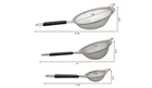 Fine Mesh Strainers Stainless Steel Insulated Handle Kitchen Gadgets Tools 3 Pcs We strive for fast shipping and satisfied customers! Product information 3 fine mesh strainers set of the sizes: 3 3/8", 5 1/2", and 7 7/8" strainer. Get these ultimate wire sift sieves to complete your Home and Kitchen Essentials collection High-Quality stainless-steel fine wire that will not rust or corrode. Easy cleaning. Dishwasher safe and can handle boiling liquids when straining pasta or hot vegetables Black insulated non-slip handles let you easily strain hot liquids and foods without burning your hand or fingers. The handles are ergonomic and feel comfortable even for long periods of use Loop for Hanging built-in to the top of each strainer. Hang them for easy access and to free up more space in your kitchen cabinets and drawers. The sieves will always be right where you need them. Ideal for straining flour, sugars, coffee, and other dry items. Also used as a sifter for baking Lets you remove impurities for safer use and improved flavor. Dimensions 14"L x 8"W x 3"H; Weight 10.8 ounces; Our rules We process your order within 1-2 business days after we receive your payment. PayPal is recommended with us, your protection as a buyer. We have 30 days free return, items must be returned in the same condition as they were received.