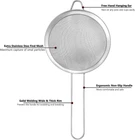 Store New Arrivals Add to Favorite View Feedback Contact Fine Mesh Strainers for Kitchen, Stainless Steel Metal Hand Small Mini Sieve Strainer, Cocktail Strainer Tea Coffee Juice Strainer,Food Strainer with Handlle (3.35Inch, Silver) Description Item model number Coffee Strainer Style Mesh Strainer Color Silver Product Dimensions 7.8"L x 3.3"W x 0.78"H Material Stainless Steel Country of Origin China Is Dishwasher Safe Yes Item Weight 1.13 ounces 1. Unbeatable Precision Straining:Our fine mesh strainer with handle is meticulously crafted with a dense and ultra-fine Stainless Steel mesh that ensures nothing escapes through the strainer but pure, smooth liquids and ingredients. Say goodbye to lumps, impurities, and unwelcome bits in your tea, coffee, juice and cocktail. The sieve strainer allows for optimal liquid flow while trapping the smallest particles, resulting in flawless textures and delightful culinary creations. 2. Premium Food-Grade Materials:We understand the importance of using safe and durable kitchen strainer. That's why our small strainer fine mesh are made from high-quality, food-grade 304 stainless steel. This ensures the mesh strainers for kitchen are resistant to rust, corrosion, and stains, providing you with a reliable straining solution that will stand the test of time. 3. Ergonomic Handle for Effortless Use: Straining should be a comfortable and enjoyable task, not a strain on your hands. Our hand strainers for kitchen features a specially designed ergonomic handle that fits comfortably in your hand, providing a secure and non-slip grip. This means no more discomfort or hand fatigue, even during extended straining sessions. 4. Easy to Clean and Dishwasher Safe:Cleaning up after a cooking session can be a hassle, but not with our sieve strainer! The strainers fine mesh construction prevents food particles from sticking, making it effortless to clean by hand or in the dishwasher. Spend less time cleaning and more time enjoying your tea, coffee, cocktail, juicing and so on. 5. Versatility Beyond the Kitchen: While our mini small mesh strainer is an essential kitchen tool, its versatility extends beyond culinary applications. Use this sieve sifters for food, tea, coffee, cocktail, juicing and so on. Its multifunctional nature makes it a valuable fine mesh sieve for every aspect of your creative life. Besides, the elegant design, functionality, and premium materials make strainer a unique and practical gift that will be appreciated by any cooking aficionado. Product Description Unbeatable Precision Straining Our fine mesh strainer with handle is meticulously crafted with a dense and ultra-fine Stainless Steel mesh that ensures nothing escapes through the strainer but pure, smooth liquids and ingredients. Say goodbye to lumps, impurities, and unwelcome bits in your tea, coffee, juice and cocktail. The sieve strainer allows for optimal liquid flow while trapping the smallest particles, resulting in flawless textures and delightful culinary creations. Premium Food-Grade Materials We understand the importance of using safe and durable kitchen strainer. That's why our small strainer fine mesh are made from high-quality, food-grade 304 stainless steel. This ensures the mesh strainers for kitchen are resistant to rust, corrosion, and stains, providing you with a reliable straining solution that will stand the test of time. Easy to Clean and Dishwasher Safe Cleaning up after a cooking session can be a hassle, but not with our sieve strainer! The strainers fine mesh construction prevents food particles from sticking, making it effortless to clean by hand or in the dishwasher. Spend less time cleaning and more time enjoying your tea, coffee, cocktail, juicing and so on. Perfect Small Mini Strainer Versatility Beyond the Kitchen While our mini small mesh strainer is an essential kitchen tool, its versatility extends beyond culinary applications. Use this sieve sifters for food, tea, coffee, cocktail, juicing and so on. Its multifunctional nature makes it a valuable fine mesh sieve for every aspect of your creative life. Besides, the elegant design, functionality, and premium materials make strainer a unique and practical gift that will be appreciated by any cooking aficionado. Warm-Tips Dishwasher Safe elegant design premium materials Great for food, tea, coffee, cocktail, juicing and mofe ABOUT US We offer the best prices around on high quality products. Our E-store includes media such as books, movies, music and games while offering electronics, toys, sporting apparel, clothing, tools, general home, garden items and more. SHIPPING We are always working hard to ensure your package arrives as soon as possible. Please understand that some factors like weather, high postal traffic, and the performance of shipping companies are outside of our control. We offer free shipping to the lower 48 states and ship within 2 business days of payment, usually sooner. We do not accept P.O. Boxes. Please provide a physical address. For shipping outside of the continental USA, we only use eBay's Global Shipping Program.The item is shipped to KY and then sent to the rest of the world. International customers are responsible for all duties and taxes. Continue to check out in order to calculate costs for shipping the item to your country. Messages regarding eBay's Global Shipping Program MUST be directed at eBay EXCLUSIVELY. RETURNS We offer a 30-Day Return Policy on items which you are not completely satisfied with. You have the option for a full-refund or an exchange of the item. No returns are available on items shipped outside of the USA. PAYMENT We accept PayPal. CONTACT US This page content is yet to come Please ad us to your favorite seller and visit again later Thank You CUSTOMER SATISFACTION We try our very best to make sure every customer is completely satisfied. If there's a problem, message us! We're happy to help. WE ACCEPT Copyright © 2021 AutoDS. | All Rights Reserved