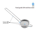 Fine Mesh Strainers for Kitchen Stainless Steel Metal Hand Small Mini Description: Noodle Strainer The small holes would prevent food from falling through, while drain water quickly. It's easy to use this fine mesh strainer to take noodles or vermicelli out of hot water. Flour & Sugar powder Strainer Using this strainer, you can easily spread flour on cake or sugar powder on doughnuts, which makes sieving and refining a breeze. Skimmer The strainer can be used as skimmer, great for refining juice, butter, condensed milk or sauce. Fine Mesh Makes Sifting & Draining Easy This strainer has a fine-grid mesh for draining the excess liquid from just about any food. The mesh is fine enough to strain rice, quinoa and beans, water drains quickly and the item would not fall through. This strainer set is also perfect for sifting flour, cocoa and powdered sugar as well as separating eggs when you are baking food. It can be used as cocktail double strainer, baking sifter, coffee dripper. Easy to Use With a Well-Made Construction The mesh is completely affixed to the reinforced rim and not able to pull out of the rim, making them more substantial. There is no problem with food getting stuck between the steel mesh and the rims. Each strainer comes with a metal loop at the top for hanging from a wall- hook, while making it easy to set onto a bowl/ cup/ pot, which keeps it level and prevents it from falling-in. Easy to Clean & Dishwasher Safe It's also easy to clean it by hand washing. Wash with a mild detergent, rinse off and dry. Fine Mesh Strainers Set Much better than regular steel or plastic that can break or rust. 304 Stainless steel is the material of choice for homes and commercial kitchens. Many Uses for Cooking & Food Preparation Features: Made from high-quality, food-grade 304 stainless steel. This strainer features a sturdy outer framework and handle. Easy cleaning. Dishwasher safe. Mirrored, burr-free wire mesh screen won't scratch your hand while you clean it. SHIPPING We are always working hard to ensure your package arrives as soon as possible. Please understand that some factors like weather, high postal traffic, and the performance of shipping companies are outside of our control. We offer free shipping to the lower 48 states and ship within 3 business days of payment, usually sooner. We do not accept P.O. Boxes. Please provide a physical address.