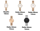 - SELECT PROPER WIDTH: Compatible with the following ladies Skagen mesh watches - Quadro and Petite Pressed 20x26mm & 24mm: 10mm - Petite 28mm: 12mm - Petite 32mm: 14mm - Petite 36mm: 16mm - AVAILABLE COLORS: Silver, Gold, Black, Rose Gold Tone • MATERIAL : Stainless Steel - QUALITY MATERIAL: High quality stainless steel mesh metal with polished and brushed satin finish. Wear and tear resistant, built to last. - INSTALLATION: Easy to install, Watch band fits watch models that attach to the watch band with 2 standard spring bar pushpins. (2 Spring Bars Included) Replacement for Daniel Wellington DW Womens Mesh Watch Bands. Compatible models include Petite and Quadro Included in Order: Watch Band(s) 2 Spring Bar Pushpins for each watch band ordered All our watch bands have 100%, 60 day money back guarantee!