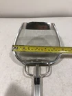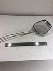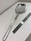 Stainless steel construction heavy gauge handle and rim 14" extra long handle with 6" shavel style fine wire skimmer with reinforced lip and reinforced skimmer to handle for durable usages great for skimmer fat layer or any dirt / unwanted item from cooking especially used for tempura frying light weight and easy to use