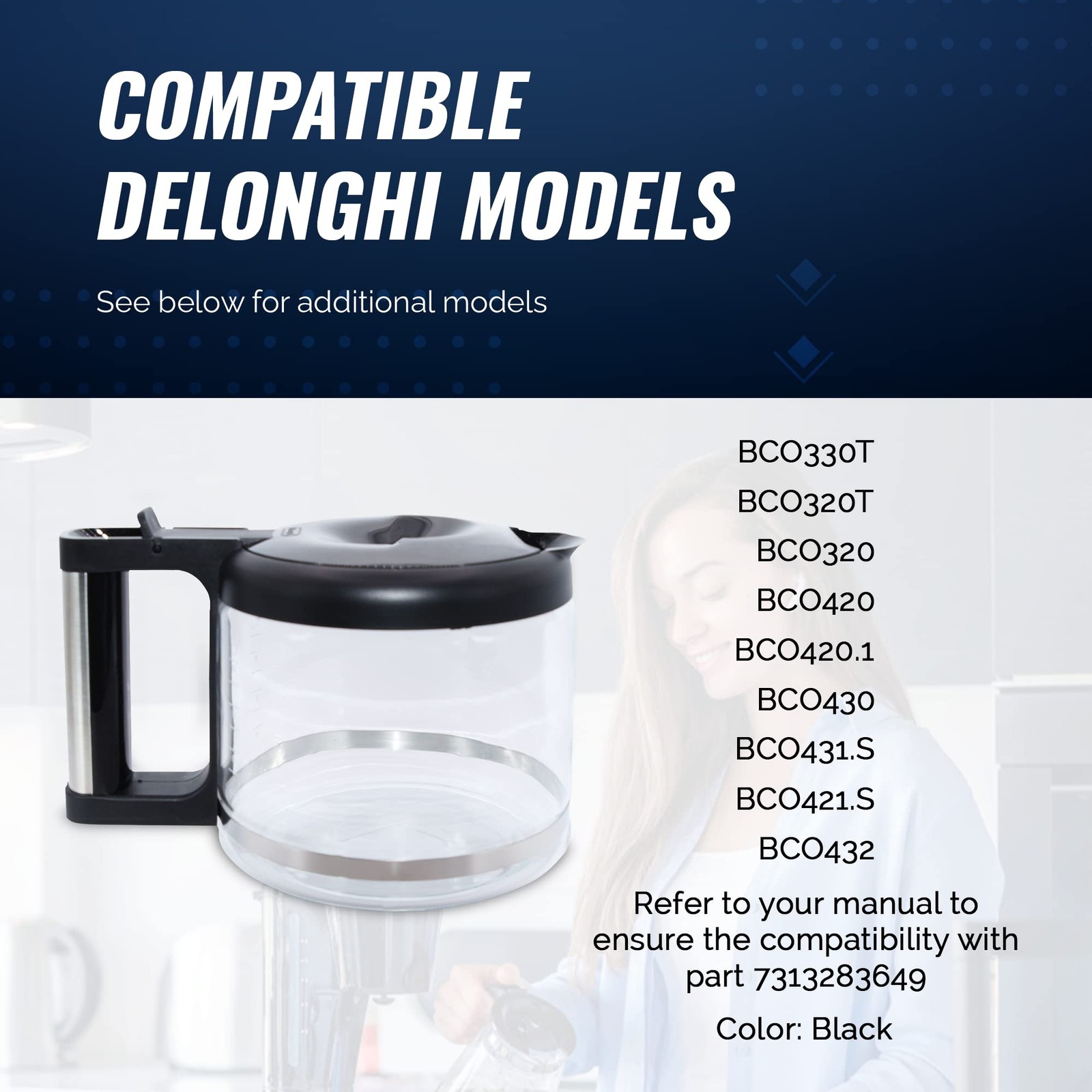 Introducing the FineParts Glass Coffee Carafe Part 7313283649, the perfect replacement carafe for your Delonghi coffee machine. Made with high-quality thermal glass, this carafe is designed to keep your coffee hot for longer periods of time. With a capacity of 10 cups, this carafe is perfect for serving your family or colleagues at the office. This carafe is compatible with various Delonghi coffee machines, including the BCO330T, and is guaranteed to fit perfectly. With its sleek design and durable construction, this carafe is sure to be a great addition to your Delonghi coffee machine. So why wait? Upgrade your coffee experience today with the FineParts Glass Coffee Carafe Part 7313283649. Compatible with models: BCO330T, BCO320T, BCO320, BCO420, BCO420.1, BCO430, BCO431.S, BCO421.S, BCO432, COM530M, COM532M, BCO330. Glass Coffee Carafe: Part #AS00000675 (Formerly 7313283649), Replacement carafe for Delonghi BCO330T coffee maker with 10 cup capacity Durable Glass Material: Made from high-quality glass to ensure long-lasting durability for your delonghi espresso coffee pot even at extreme temperatures! Compatible with Delonghi Espresso Machines: Designed to work specifically with Delonghi espresso machines, making it the perfect replacement carafe including models below. Thermal Properties: Keeps coffee hot for longer periods of time for thermal carafe properties Easy to Clean: Simple to clean, making it the perfect addition to your Delonghi coffee machine and accessories