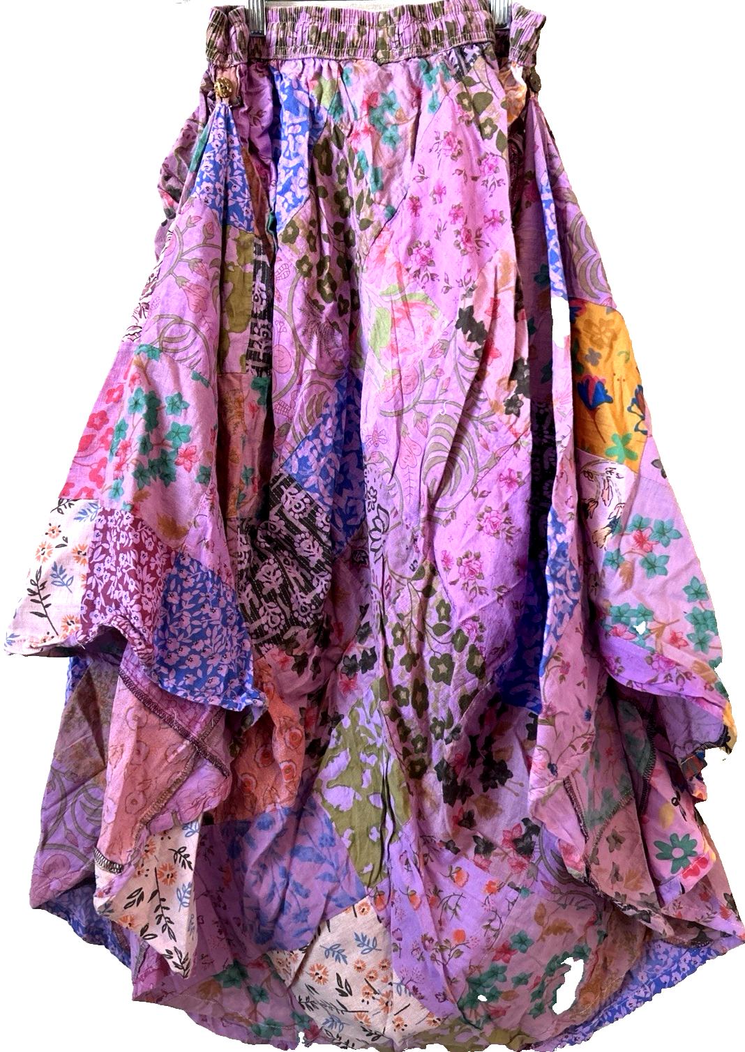This Finger Loop Skirt by Gypsy Rose is a versatile and stylish addition to any wardrobe. Made from 100% cotton, it is lightweight and perfect for both dancing and everyday wear. The floral and nature pattern, along with the pleated design, gives it a bohemian and hippie-inspired character. With a tie closure and elastic waist, this skirt offers both style and comfort. Additionally, the multicolor design and mid-rise make it suitable for casual occasions during the summer, fall, and spring seasons. Machine washable and featuring pockets, this skirt is a practical and fashionable choice for any woman.