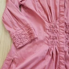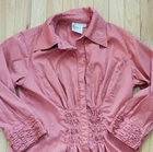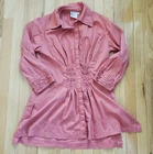 Finley Mr. Smith Silky Solid Tunic Button Front Top Good pre-owned condition, no flaws 3/4 sleeve Covered buttons Smocking at waist in front, smocked look on cuffs 8.5 inch side slits 65% cotton, 33% polyester, 3% spandex Marked a size S Approximate measurements 19 inches from armpit to armpit 16 inches across waist 28 inches in length from top of shoulder to bottom of hem at front center of top
