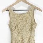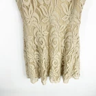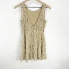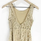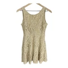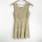 Finn & Clover womens size medium tan lace dress. Sleeveless, open back with see through lace detail. Floral detail and medium weight fabric. New with tags! Material: 80% cotton 20% nylon Measurements (in inches) Sleeve Opening : (top of shoulder to armpit) 9" Sleeve length: (from armpit to hem of sleeve) 0" Length: (top of shoulder at neckline to hem) 30" Chest : (armpit to armpit) 14" Please email us with any questions! We stand by our clothing items and strive to make every purchase perfect, please reach out if you have an issue with an order before leaving negative feedback