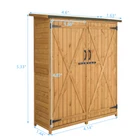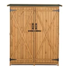 Introductions: We want to help you solve your storage problems. This medium storage shed keeps items safe, dry and clean. It is roomy enough to store some small or medium tools, handsome enough to compliment any yard decor. It features two doors for easy store, latch locking doors. Asphalt felt roof not only durable but also beautiful. And it is easy-to-follow assembly instructions inside package. Waiting for you to take back to your home! Features: 1. Suitable for storing all kinds of tools and accessories, such as watering can, spades, pot, etc. 2. Equipped with double doors, double lock, double handle 3. Installation instructions 4. Made of high quality material, durable in use 5. Brand new and high quality Specifications: 1. Overall Size: (55.1 x 19.7 x 63.8)" / (140 x 50 x 162)cm (L x W x H) 2. Single Door Size: (23.2 x 55.9)" / (58.93 x 141.986)cm (L x W) 3. Height Between the Two Pieces of Layer Board: 18.3" / 46.48cm 4. Wood Thickness: 0.39" / 0.99cm 5. Material: Fir Wood & Asphalt Felt 6. Color: Wood Color & Green 7. Weight: 13kg / 28.66lbs 8. Internal Capacity: About 700L Package Includes: 1 x Storage Shed(Back Plate, Side Panel, Roof) 1 x Instruction Note: Need simple assemble (need electric drill)