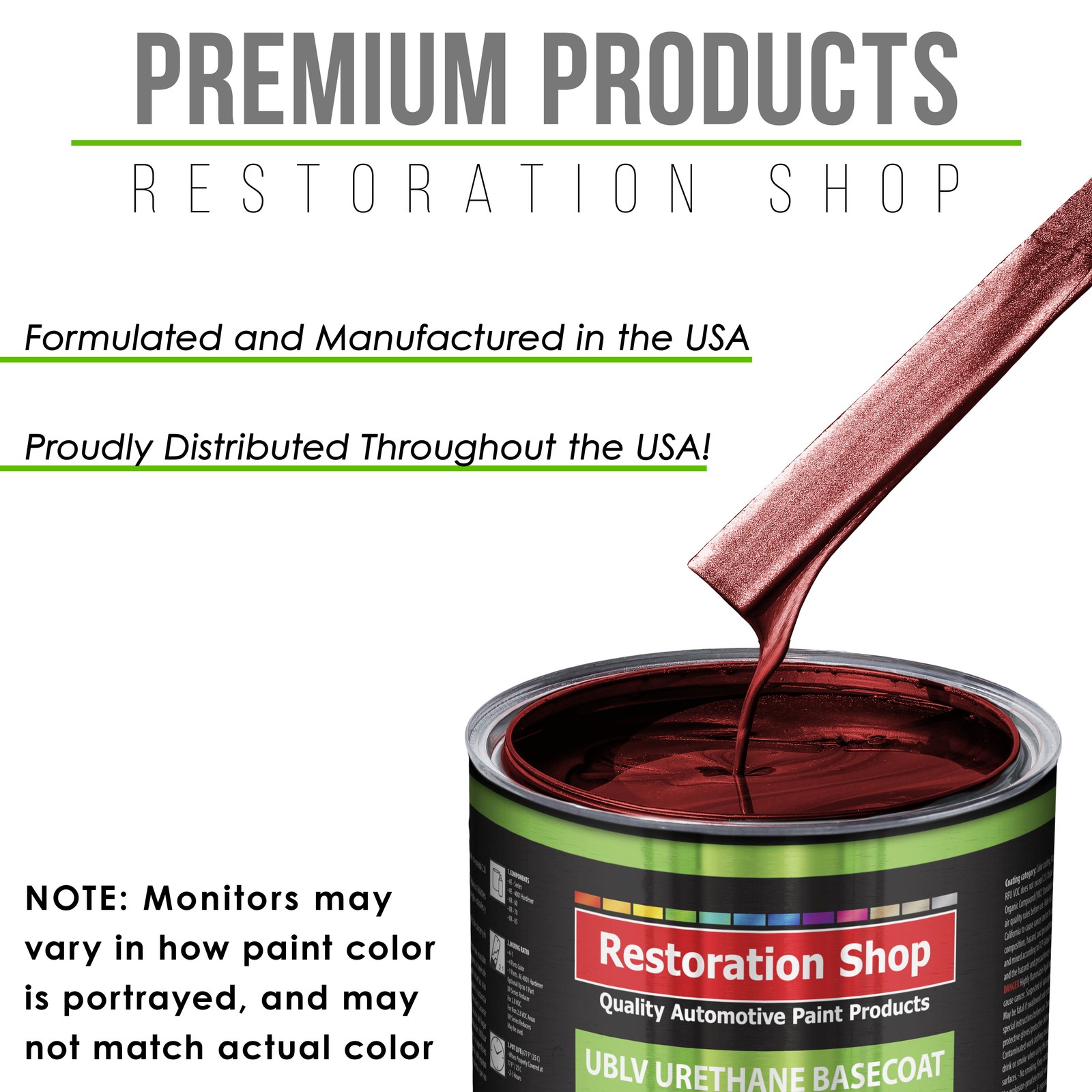 TCP Global Ebay Storefront Ordering | Shipping | Returns | International Product Information FLAMMABLE/HAZARDOUS ITEMS ARE SHIPPED VIA UPS GROUND/STANDARD TO THE LOWER 48 U.S. STATES & CANADA. ***SHIPPING VIA U.S. POSTAL SERVICE OR TO A P.O. BOX IS NOT AVAILABLE.*** RUSH AIR SHIPPING IS AVAILABLE IN CONTINENTAL U.S. FOR AN ADDITIONAL HAZMAT AIR SHIPPING CHARGE. CONTACT US PRIOR TO ORDERING FOR AIR SHIPPING QUOTE. IF ORDER IS PLACE FOR AIR SHIPPING YOU WILL BE CONTACTED FOR ADDITIONAL SHIPPING PAYMENT. INTERNATIONAL SHIPPING IS AVAILABLE. CONTACT US FOR SHIPPING QUOTE PRIOR TO ORDERING. Part# RSP UBLV2702-KIT-M Fire Red Pearl - LOW VOC Urethane Basecoat with Clearcoat Auto Paint - Complete Medium Gallon Paint Kit - Professional High Gloss Automotive Coating Complete 1 Gallon Restoration Shop - Low 3.5 VOC Urethane Basecoat with Clearcoat Auto Paint Kit with Medium Drying Reducer (Used when the ambient temperature range is 70-85Á F). The kit provides 1-1/2 gallons (6 Quarts) of sprayable basecoat color material and 1-1/4 gallons (5 Quarts) of High-Gloss Clearcoat. UBLV Paint Kit includes 1 Gallon of UBLV Low VOC Urethane Basecoat Paint Color, 1 Gallon of XR70 Exempt Medium Urethane Reducer, 1 Gallon of RC4221 High-Gloss Urethane Clear, 1 Quart of RH4201 Urethane Hardener, 5 Pack of 190 Micron Nylon Automotive Strainers and a 5 Pack of Wood Paint Mixing Sticks. The Restoration Shop (UBLV) Low VOC Urethane Basecoat and Premium Clearcoat System is a State-of-the-Art High-Performance Professional Easy-To-Use Paint Coating System that is Designed to Reproduce the Hi-Tech O.E.M. Automotive Finishes Found on Today's Vehicles. UBLV is an easy to spray fast-drying basecoat/clearcoat system that provides a long-lasting and very high gloss topcoat finish result. UBLV is an extremely durable, chemical and solvent resistant coating that also resists chipping, cracking, and UV ray fading. Restoration Shop's (UBLV) is a Low 3.5 VOC compliant basecoat/clearcoat paint system that may be used in National Rule or Low 3.5 VOC limit States when using it with the proper XR series reducers. Note: Monitors vary - onscreen colors are for general color reference only. Restoration Shop (UBLV) LOW VOC URETHANE BASECOAT with CLEARCOAT - COMPLETE MEDIUM GALLON PAINT KIT Includes: 1 - Gallon of Restoration Shop Low 3.5 VOC Premium Urethane Basecoat Auto Paint Color 1 - Gallon of Medium (70-85¡ F) Exempt Urethane Reducer (RSP XR70-GL) 1 - Gallon of Custom Shop High-Gloss Urethane Clear (RSP RC4221-GL) 1 - Quart of Urethane Hardener (RSP RH4201-QT) 5 - Each Premium 190 Micron Nylon Automotive Strainers 5 - Each Wood Paint Mixing Sticks UBLV Paint Color has a 2 to 1 Mixing Ratio, 2 parts UBLV Paint Color to 1 part XR Urethane Reducer. UBVL Basecoat color requires a 2 to 1 mix ratio with the included medium drying (70-85¡ F) XR exempt urethane reducer before spraying. Restoration Shop High-Gloss Urethane Clear (RSP RC4221) has a 4 to 1 Mix Ratio, 4 parts Urethane Clearcoat to 1 part Urethane Hardener A 2.1 VOC conventional solid polyurethane clearcoat. A two-component (2K) polyurethane clearcoat formulated to offer ease of application, great flow and leveling, excellent durability ,and high-gloss. This high-quality clearcoat is the preferred high production topcoat that professionals use in today's high-end auto body shops. This clearcoat is used for overall application, and is also used for spots and panels. The clearcoat is VOC compliant for all multi-stage topcoat systems, and can also be applied on top of other basecoat brands. Optional Reducers Available Separately XR Series Exempt Reducers to Maintain a 3.5 VOC Level: XR60 Exempt Fast Reducer 60-70¡ F; XR70 Exempt Medium Reducer 70-85¡ F; XR85 Exempt Slow Reducer 85¡ F and above Since 1974, Restoration Shop has been a Trusted Top Quality Brand and The Source for Innovative Premium Quality Automotive Products! Restoration Shop Low VOC UB Urethane Basecoat is a state-of-the-art basecoat designed to reproduce the hi-tech O.E.M. finishes found on today's vehicles. It features outstanding coverage, rapid dry time, excellent metallic control and optimum repairability. UBLV provides an environmentally friendly solvent solution. View all categories Warehouse Locations San Diego, California South Carolina