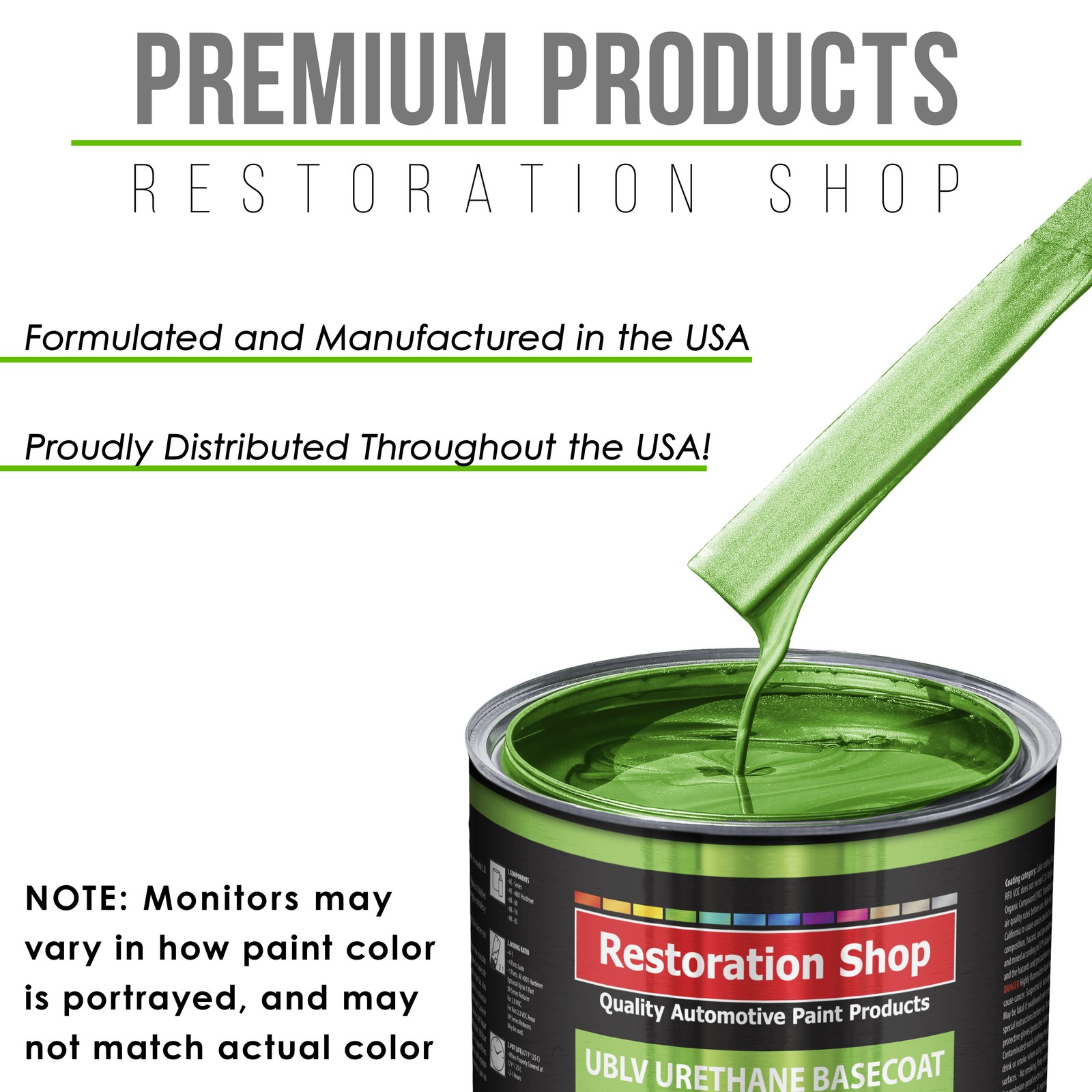 TCP Global Ebay Storefront Ordering | Shipping | Returns | International Product Information FLAMMABLE/HAZARDOUS ITEMS ARE SHIPPED VIA UPS GROUND/STANDARD TO THE LOWER 48 U.S. STATES & CANADA. ***SHIPPING VIA U.S. POSTAL SERVICE OR TO A P.O. BOX IS NOT AVAILABLE.*** RUSH AIR SHIPPING IS AVAILABLE IN CONTINENTAL U.S. FOR AN ADDITIONAL HAZMAT AIR SHIPPING CHARGE. CONTACT US PRIOR TO ORDERING FOR AIR SHIPPING QUOTE. IF ORDER IS PLACE FOR AIR SHIPPING YOU WILL BE CONTACTED FOR ADDITIONAL SHIPPING PAYMENT. INTERNATIONAL SHIPPING IS AVAILABLE. CONTACT US FOR SHIPPING QUOTE PRIOR TO ORDERING. Part# RSP UBLV2901-KIT-Q-P Firemist Lime - LOW VOC Urethane Basecoat with Premium Clearcoat Auto Paint - Complete Medium Quart Paint Kit - Professional Gloss Automotive Coating Complete 1 Quart Restoration Shop - Low 3.5 VOC Urethane Basecoat with Premium Clearcoat Auto Paint Kit with Medium Drying Reducer (Used when the ambient temperature range is 70-85Á F). The kit provides 1-1/2 Quarts of sprayable basecoat color material and 1-1/4 Quarts of Premium Clearcoat. UBLV Paint Kit includes 1 Quart of UBLV Low VOC Urethane Basecoat Paint Color, 1 Quart of XR70 Exempt Medium Urethane Reducer, 1 Quart of HS3010 Premium High Solids Ultra Clear, 1 Half-Pint of HS3030 Premium High Solids Hardener and a 3 Pack of 190 Micron Nylon Automotive Strainers. The Restoration Shop (UBLV) Low VOC Urethane Basecoat and Premium Clearcoat System is a State-of-the-Art High-Performance Professional Easy-To-Use Paint Coating System that is Designed to Reproduce the Hi-Tech O.E.M. Automotive Finishes Found on Today's Vehicles. UBLV is an easy to spray fast-drying basecoat/clearcoat system that provides a long-lasting and very high gloss topcoat finish result. UBLV is an extremely durable, chemical and solvent resistant coating that also resists chipping, cracking, and UV ray fading. Restoration Shop's (UBLV) is a Low 3.5 VOC compliant basecoat/clearcoat paint system that may be used in National Rule or Low 3.5 VOC limit States when using it with the proper XR series reducers. Note: Monitors vary - onscreen colors are for general color reference only. Restoration Shop (UBLV) LOW VOC URETHANE BASECOAT with PREMIUM CLEARCOAT - COMPLETE MEDIUM QUART PAINT KIT Includes: 1 - Quart of Restoration Shop Low 3.5 VOC Premium Urethane Basecoat Auto Paint Color 1 - Quart of Medium (70-85¡ F) Exempt Urethane Reducer (RSP XR70-GL) 1 - Quart of Custom Shop Series Premium High Solids Ultra Clear (RSP HS3010-QT) 1 - Half-Pint of Premium High Solids Hardener (RSP HS3030-HP) 3 - Each Premium 190 Micron Nylon Automotive Strainers UBLV Paint Color has a 2 to 1 Mixing Ratio, 2 parts UBLV Paint Color to 1 part XR Urethane Reducer. UBVL Basecoat color requires a 2 to 1 mix ratio with the included medium drying (70-85¡ F) XR exempt urethane reducer before spraying. Custom Shop Series Premium High Solids Ultra Clear (RSP HS3010) has a 4 to 1 Mix Ratio, 4 parts Urethane Clearcoat to 1 part Urethane Hardener A Low 2.1 VOC medium-solids (MS), 2K (two-component) polyurethane clearcoat formulated to offer ease of application and has great flow and leveling, excellent durability, exceptional gloss and good distinctness of image. This superior quality clearcoat is the professional's topcoat choice for use in today's high-end auto body shops. This clearcoat is used for overall application and is also used for spots and panels. The clearcoat is VOC compliant for all multi-stage topcoat systems, and can also be applied on top of other basecoat brands. Optional Reducers Available Separately XR Series Exempt Reducers to Maintain a 3.5 VOC Level: XR60 Exempt Fast Reducer 60-70¡ F; XR70 Exempt Medium Reducer 70-85¡ F; XR85 Exempt Slow Reducer 85¡ F and above Since 1974, Restoration Shop has been a Trusted Top Quality brand and The Source for Innovative Premium Quality Automotive Products! Restoration Shop Low VOC UB Urethane Basecoat is a state-of-the-art basecoat designed to reproduce the hi-tech O.E.M. finishes found on today's vehicles. It features outstanding coverage, rapid dry time, excellent metallic control and optimum repairability. UBLV provides an environmentally friendly solvent solution. View all categories Warehouse Locations San Diego, California South Carolina