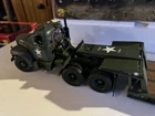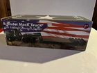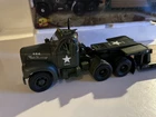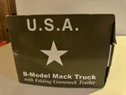 First Gear 1960 Mack B-61 Tractor and folding Gooseneck Trailer, Limited Edition Model diecast model replica featuring “U.S.A.” Military. Condition is very good, no damage, no dust/dirt, item looks and displays beautiful. Please note item is missing Bulldog hood ornament and manual booklet, the box has some ware. See pictures for more details. Shipped with FedEx Ground.