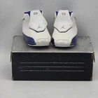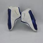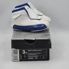 The First Jordan XV111 (18) 305887 101 in size 3C is a stylish and comfortable sneaker for your little one. Made with leather upper material and featuring the iconic Nike Air design, these shoes are perfect for casual or activewear occasions. With a hook and loop closure, logo accents, and sport royal color, these sneakers are sure to be a hit with any toddler. Representing the Jordan brand and their signature Jumpman character, these athletic shoes are a trendy choice for your child's wardrobe.