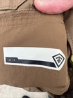 These First Tactical Men's Fast-Tac Urban Pants are in a size 40 with a 32-inch inseam. They are beige chino-style pants made of stretchy canvas fabric, featuring a flat front and straight leg design. The pants have cargo pockets and a logo accent, suitable for work or daily wear. Easy to care for with machine washable instructions, they offer comfort and practicality for everyday use.