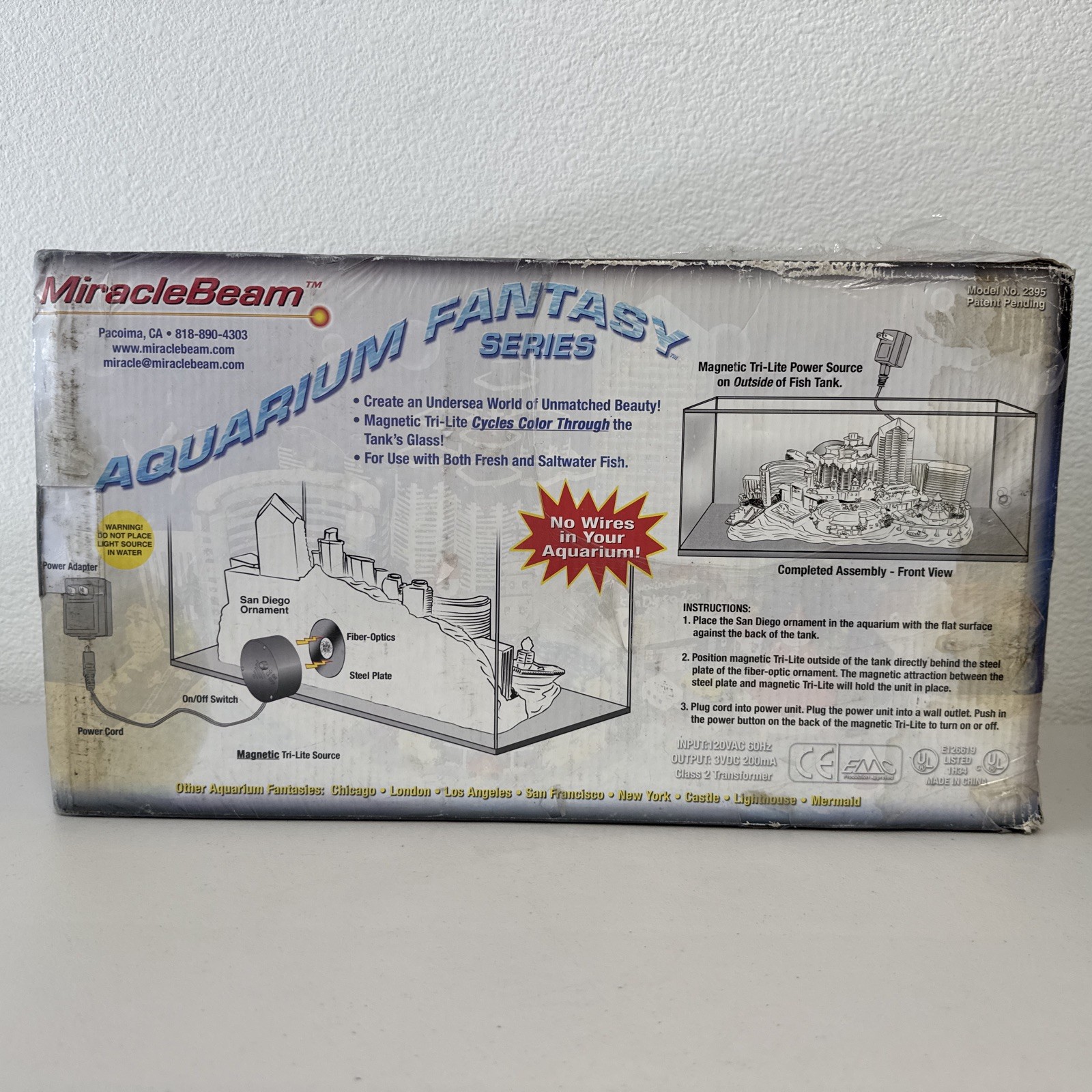 The Fish Aquarium San Diego City Skyline MiracleBeam Color Changing Lights Decor is a unique and visually stunning addition to any fish tank. Made of polyresin and featuring color-changing fiber optic technology, this decoration creates a mesmerizing show underwater. With a red color scheme inspired by the San Diego city skyline, this Miracle Beam product adds both style and interest to any aquarium setup. Suitable for all water types, this decoration is sure to enhance the beauty and vibrancy of any fish tank.
